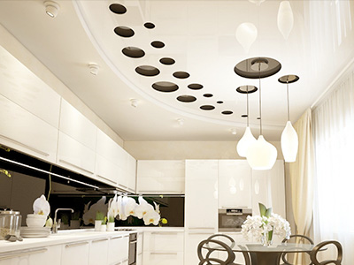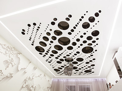 - Универсально и красивоКакой бы стиль вы ни выбрали для оформления интерьера, к нему обязательно получится подобрать потолочное покрытие из пленки ПВХ или ткани, так как вариантов великое множество.