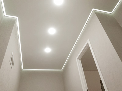 Устанавливаются закладные через каждые 50-100 см( точное расстояние определит технолог на замере) далее натягивается потолок и крепится карниз на эти закладные. Исходя из ваших пожеланий, мы можем установить карниз на потолок, либо сделать нишу.